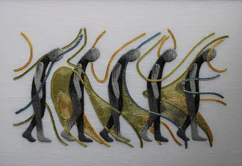 Curated by Jo Dixey, a freelance needleworker and teacher who studied at the Royal School of Needlework in London. As well as pursuing her own creative work, she undertakes a wide range of commissions including work for the film and fashion industries.