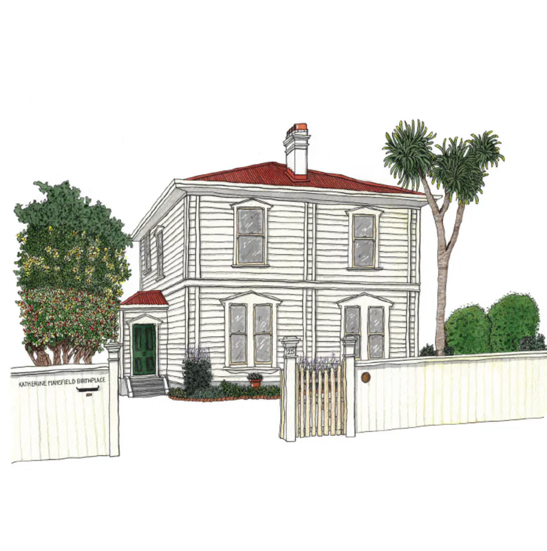 Cards feature selected quotes from Mansfield's letters and journals, an illustration of the house by Stacey Fraser-Allen of Brick & Water Creative and images of objects from the collection of Katherine Mansfield House & Garden and the Alexander Turnbull Library.
