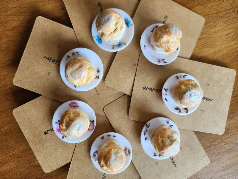 Hand-sculpted polymer clay pins, specially made for Katherine Mansfield House & Garden by local maker Teeny Baker.